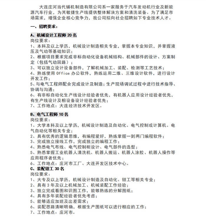 機械設(shè)計、電氣工程師、裝配鉗工