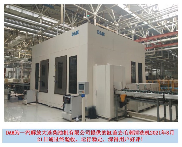 DAM為一汽解放大連柴油機(jī)有限公司提供的缸蓋去毛刺清洗機(jī)深得用戶好評!